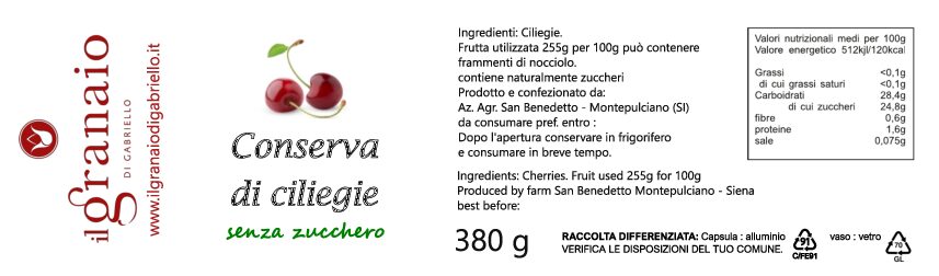 La conserva di ciliegie prodotta con frutti raccolti nel territorio di Montepulciano (SI).